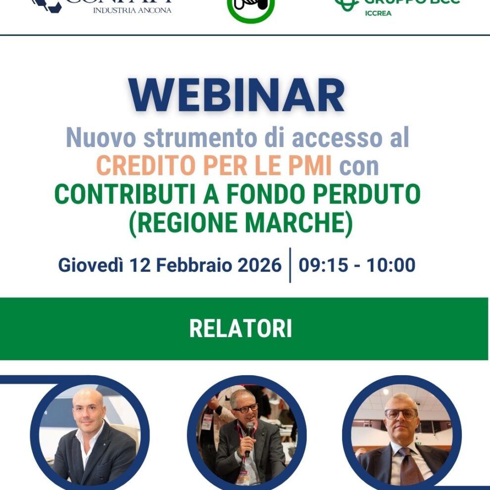 WEBINAR DI CONFAPI INDUSTRIA ANCONA: NUOVO STRUMENTO DI ACCESSO AL CREDITO PER LE PMI – CONTRIBUTI A FONDO PERDUTO (REGIONE MARCHE)
